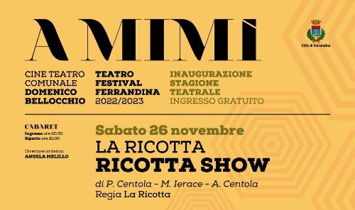 “A Mimì -Teatro Festival Ferrandina”: prosa, musica, danza per la stagione 2022 diretta da Angela Melillo. Sabato 26 novembre, il via con la conferenza stampa e lo spettacolo del trio La Ricotta.