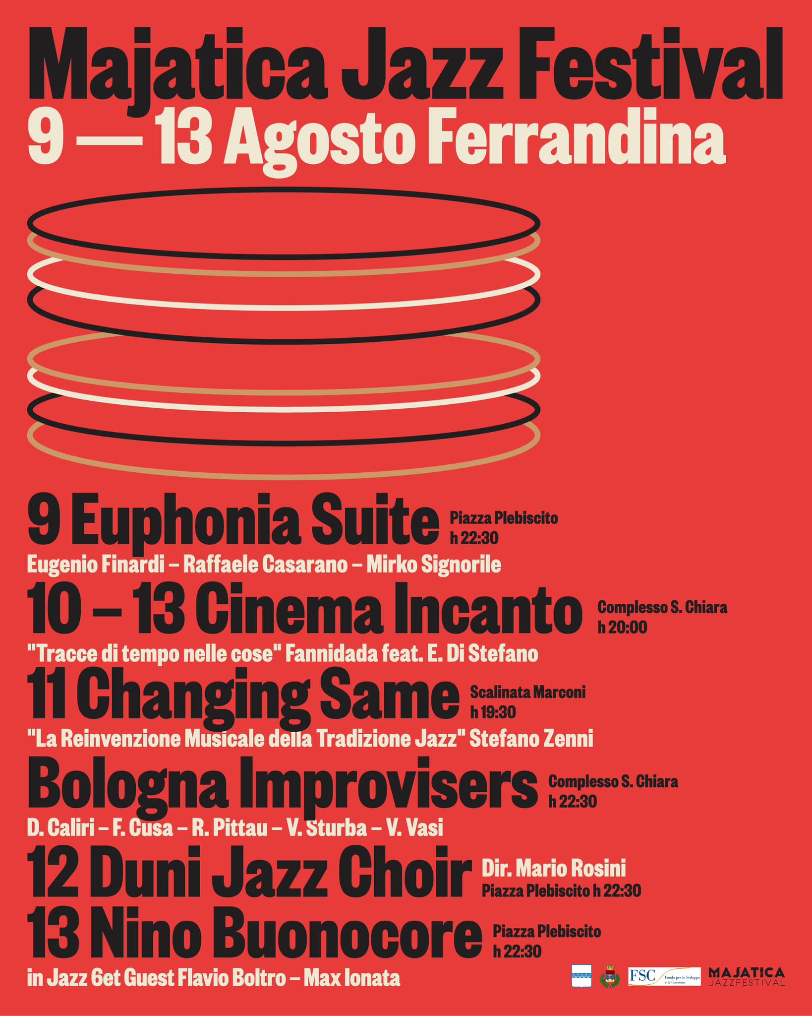 Dal 9 al 13 agosto, a Ferrandina è di nuovo Majatica jazz festival. Cinque giornate dense di incontri, concerti e performance artistiche. Filo conduttore dell'ottava edizione del festival, che porta il nome dell’ulivo simbolo di Ferrandina, è il rapporto tra parole e musica. Dalle parole che comunicano idee, concetti e visioni a quelle che diventano puro suono. Il simbolo del Majatica jazz festival 2024, bene del patrimonio culturale intangibile della Regione Basilicata, come spiegano i direttori artistici Fabio Vito Lacertosa e Raffaele Pecora, è una versione geometrica e tridimensionale del concetto di disco. “Otto cerchi, come le edizioni del festival, su un rosso avvolgente. Disco oleario - disco musicale, un [...]
