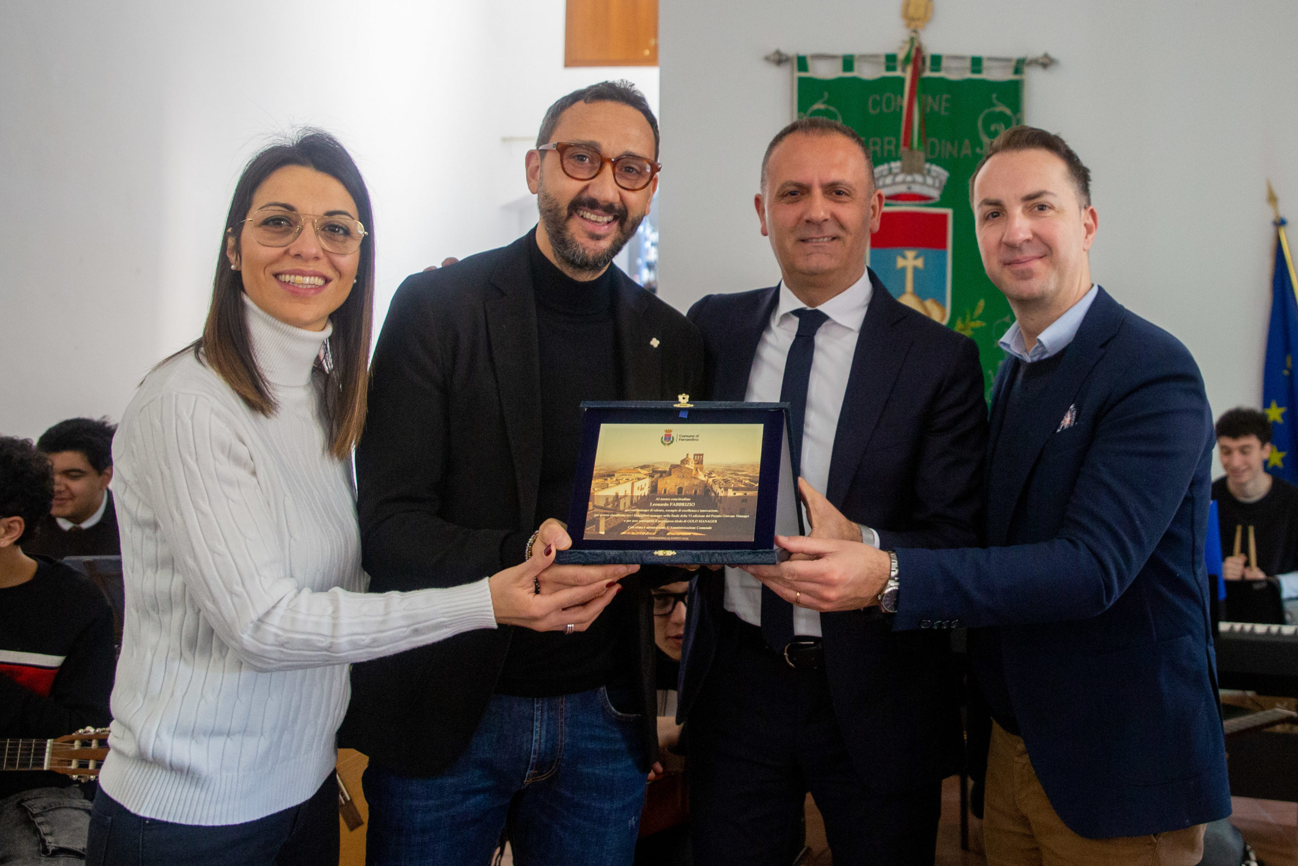 Al giovane manager Leonardo Fabbrizio la targa dell’Amministrazione comunale durante la cerimonia di accoglienza degli studenti Erasmus a Ferrandina