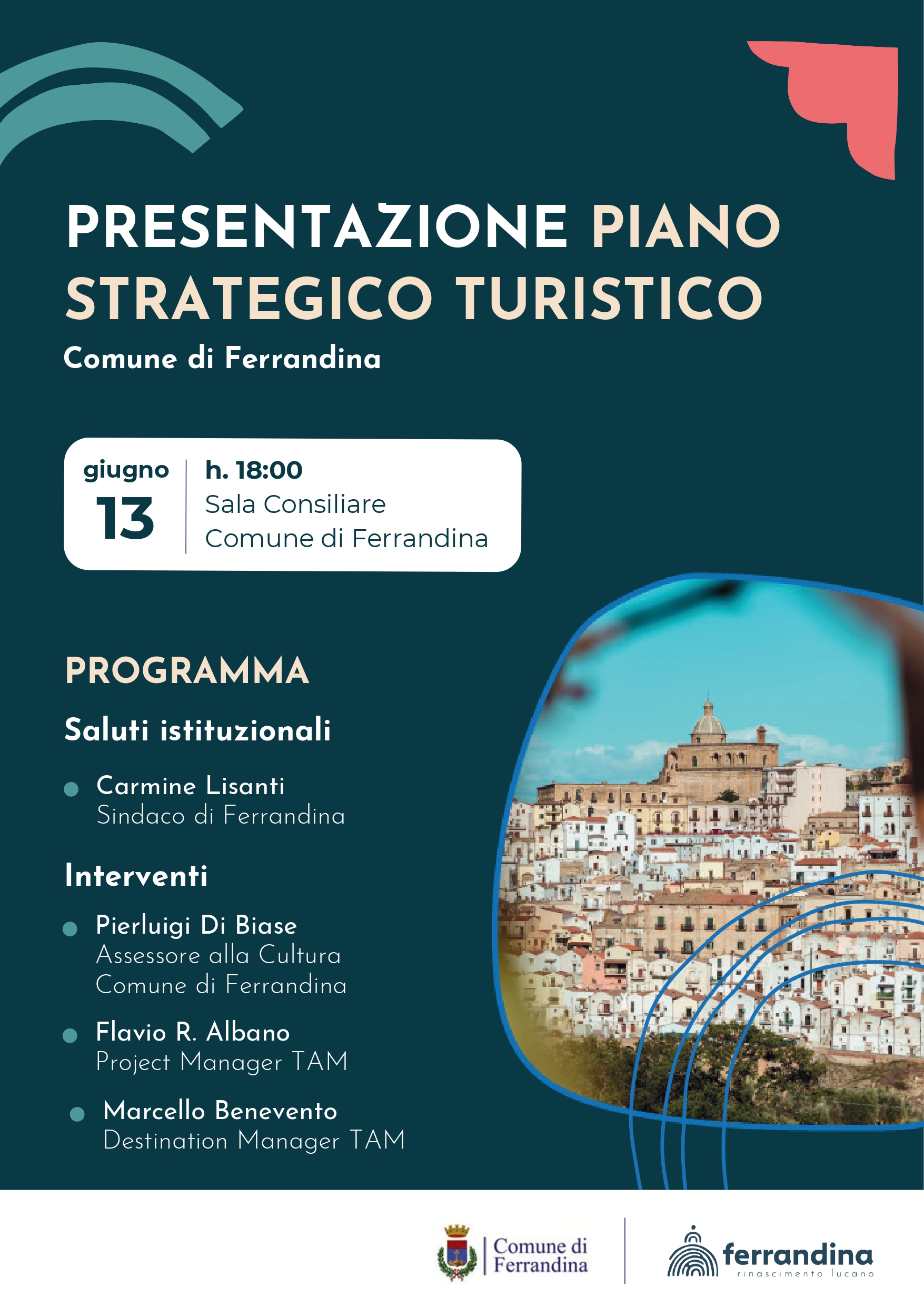 Venerdì 13 giugno, alle ore 18:00, nella Sala Consiliare del Comune di Ferrandina l’Amministrazione comunale di Ferrandina presenta alla comunità il Piano strategico del Turismo "Rinascimento Lucano". Sarà un momento chiave per condividere la visione, i valori e le azioni concrete che guideranno lo sviluppo turistico della città e del territorio. Il Piano si fonda sui principi di sostenibilità, innovazione e coinvolgimento della comunità locale, con l'obiettivo di valorizzare il ricco patrimonio culturale, storico e naturale di Ferrandina. Il Piano strategico, inoltre, si articola in diverse linee d'azione, tra cui la valorizzazione del patrimonio culturale e storico, lo sviluppo di un turismo sostenibile, l'innovazione e la rigenerazione urbana, il miglioramento [...]