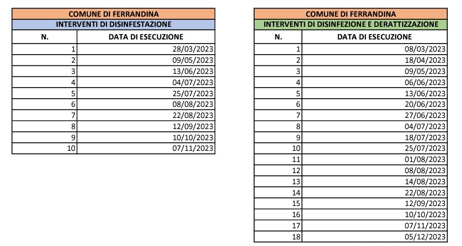 Si informa la cittadinanza che, nella sezione Raccolta RSU del sito del Comune di Ferrandina, è consultabile il programma annuale degli interventi di derattizzazione, disinfestazione e disinfezione che ProgettAmbiente effettuerà sul territorio comunale nel corso del 2023.